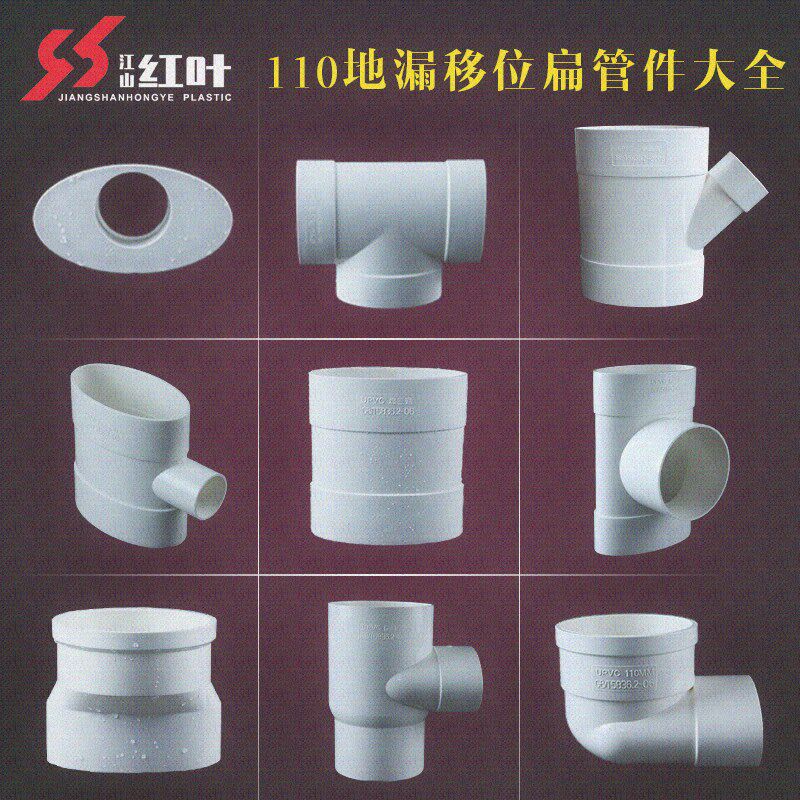 PVC drainage flat pipe fittings 110 oval pipe flat accessories Powder room toilet displacement sewer flat mouth drainage sewage pipe