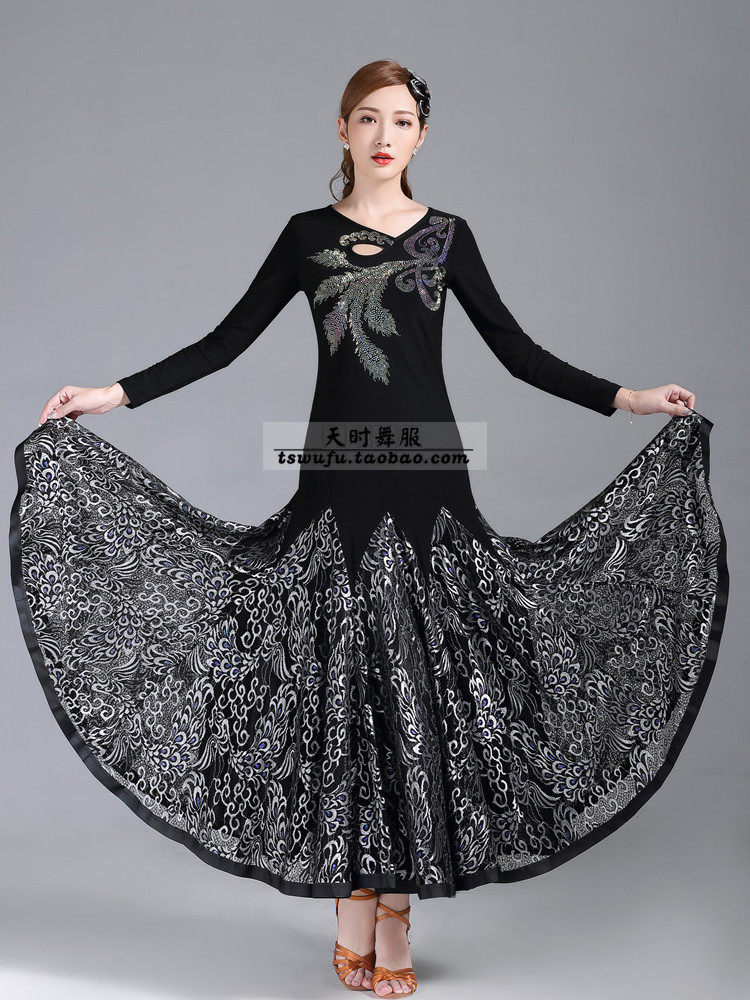 Silver Thread Phoenix Flowers Morden Dance Dress Woman Waltz Dance Dress National Standard Dance Dress Slow Four Dance Dress Square Social Dance Dress