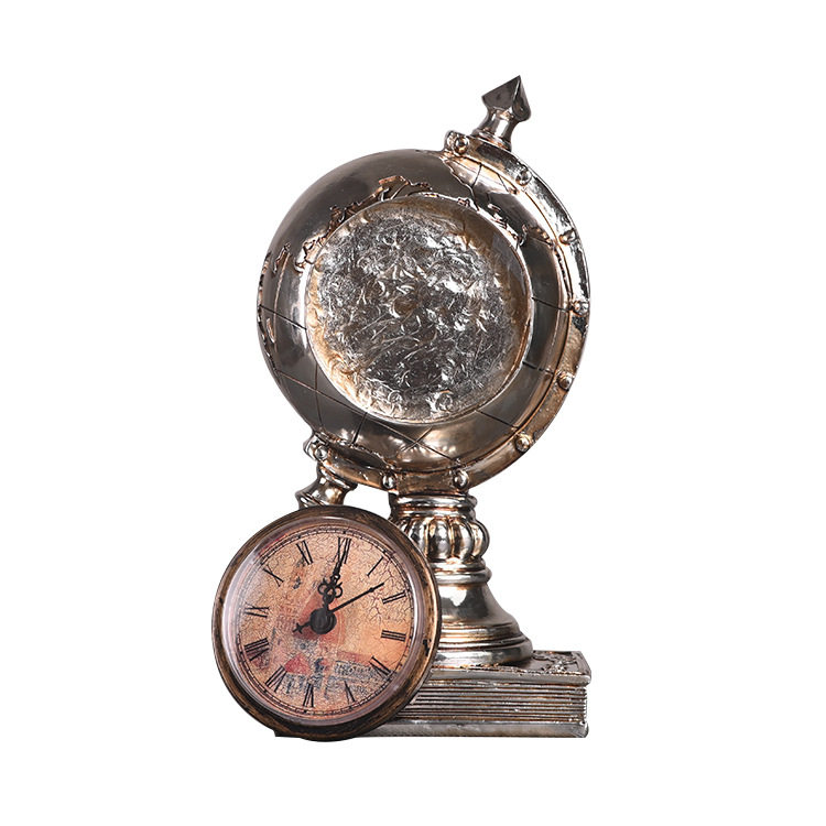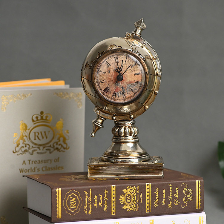 Globe clock American retro home fashion clock decoration Creative office decoration Desktop decoration
