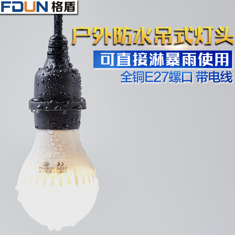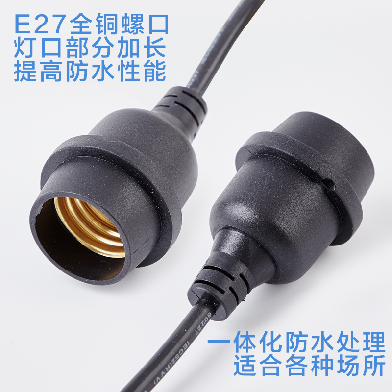Outdoor waterproof lamp head IP66 riot rain water full copper E27 screw mouth with wire high temperature resistant flame retardant suspension lamp holder