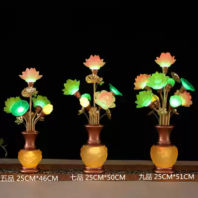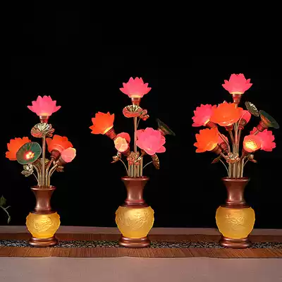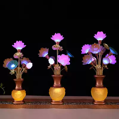 Buddha Hall Temple Buddha offering lamp Glass vase Colorful LED Lotus Lamp Changming Lamp 579 Lotus Guanyin Lamp