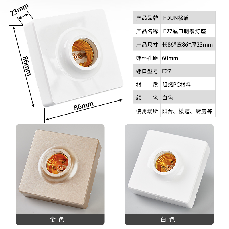 Suction-top Ming-fit lamp holder Home E27 screw mouth LED energy-saving lamp Easy Ming box Ming line wall square lamp holder
