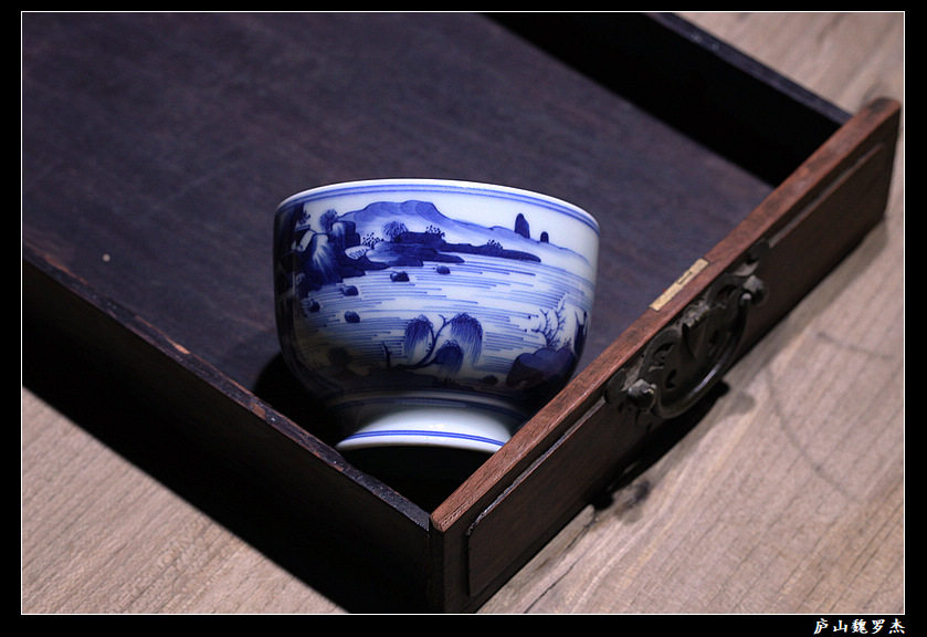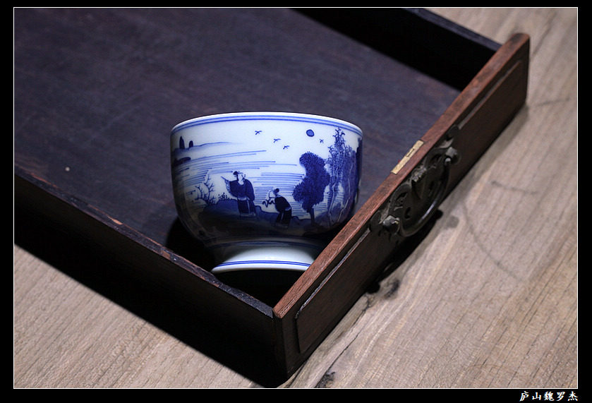 Chai Kiln "Qingfu" High Circle Foot Green Flower Landscape Cup WeiRoger Private Jingdezhen Handmade Lagoon Drawing Tea Set