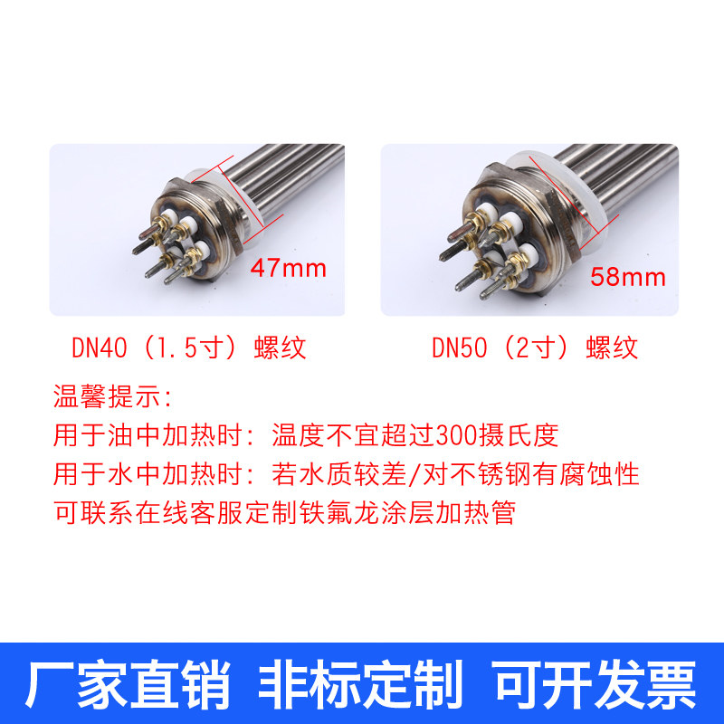 Stainless steel 304 heat transfer oil 380V6 9 12KW high-power engineering water tank boiler sandwich pot electric heating tube