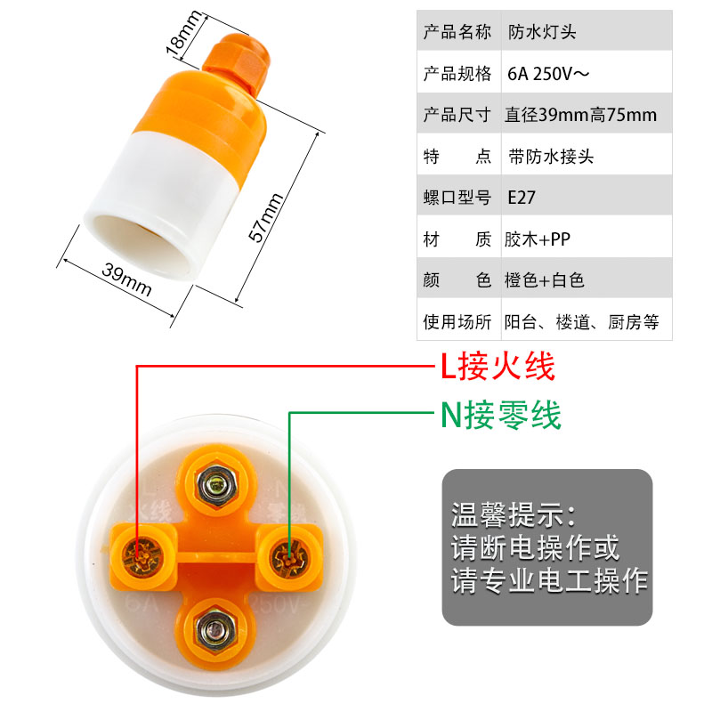Outdoor waterproof hanging type lamp holder E27 with waterproof joint sealing anti-rainstorm lamp holder seat outdoor screw lip lamp holder