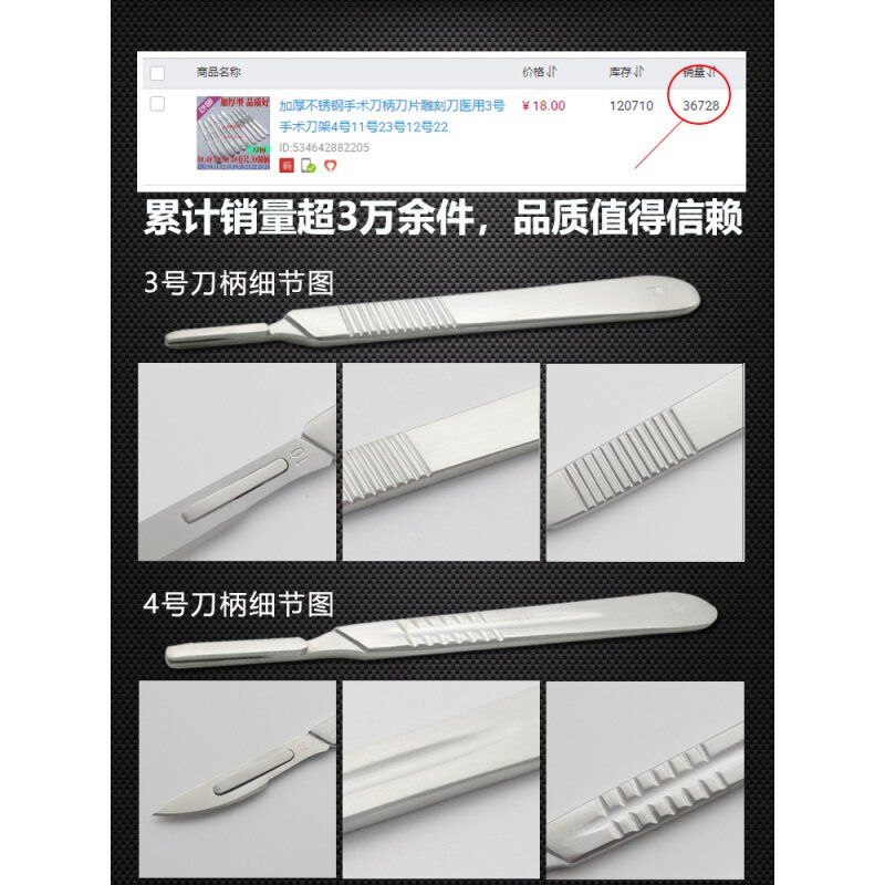 Thickened stainless steel scalpel handle blade carving knife medical No. 3 surgical knife holder No. 4 No. 11 No. 23 No. 12 No. 22