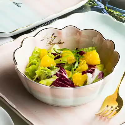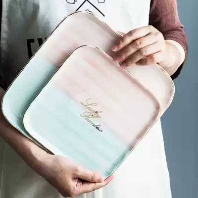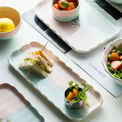 Shuanghong Japanese-style ceramic tableware Net celebrity ins household plate Creative plate Soup bowl Rice bowl Simple Western dish