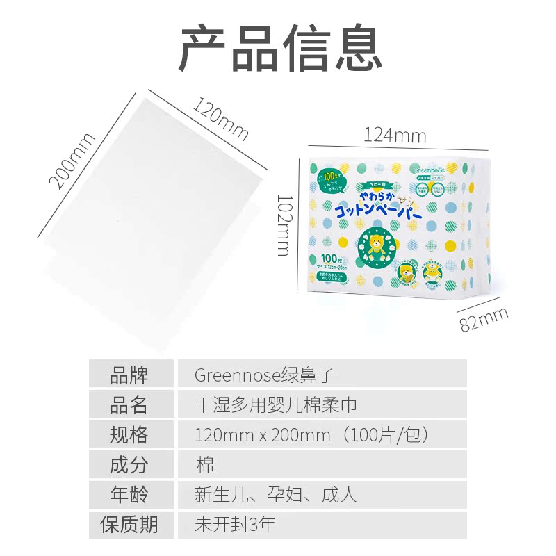 Japanese green nose Greennose baby cotton soft towel baby dry and wet with pure cotton thickened newborn tissue