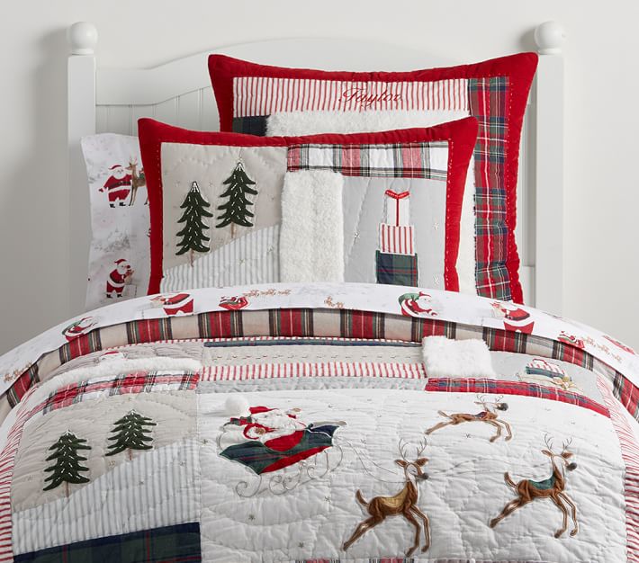 Beautiful Christmas Eve "busy Santa" pasted with lamb fluff quilting kit ~ all cotton soft