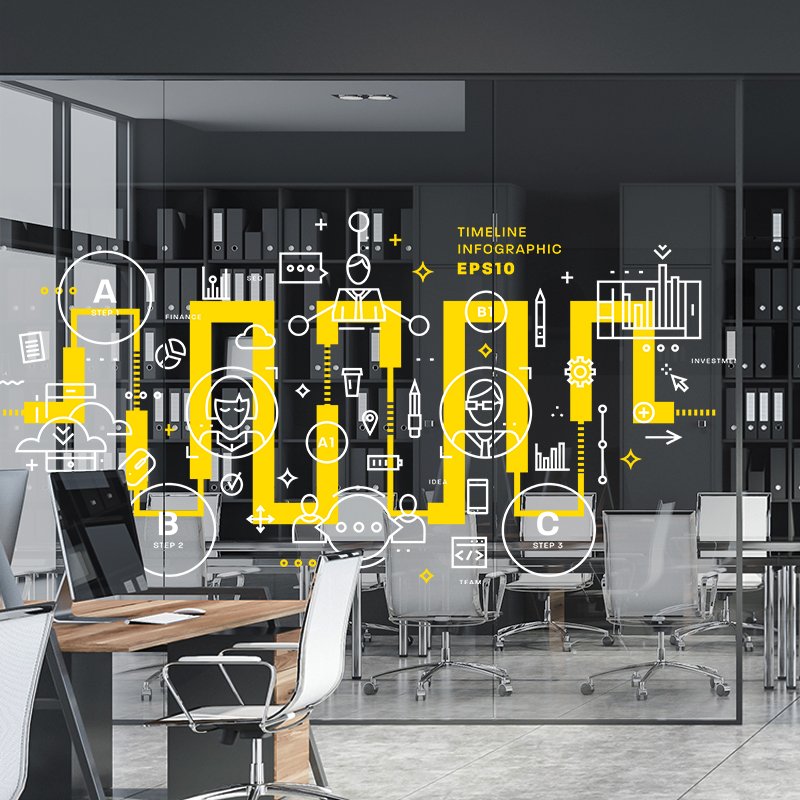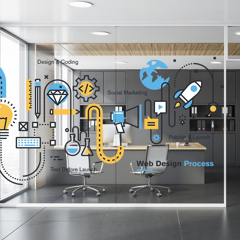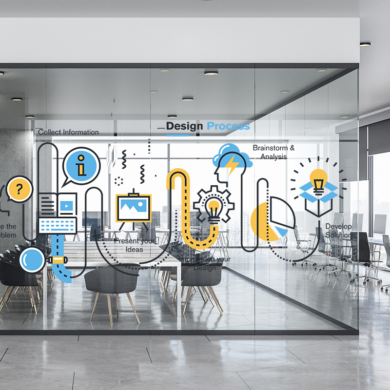Customized creative technology machinery machine glass film office scientific research room design department transparent hollow sticker