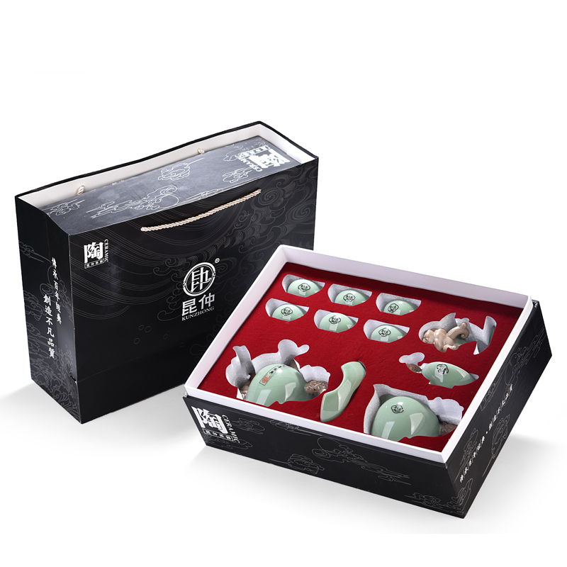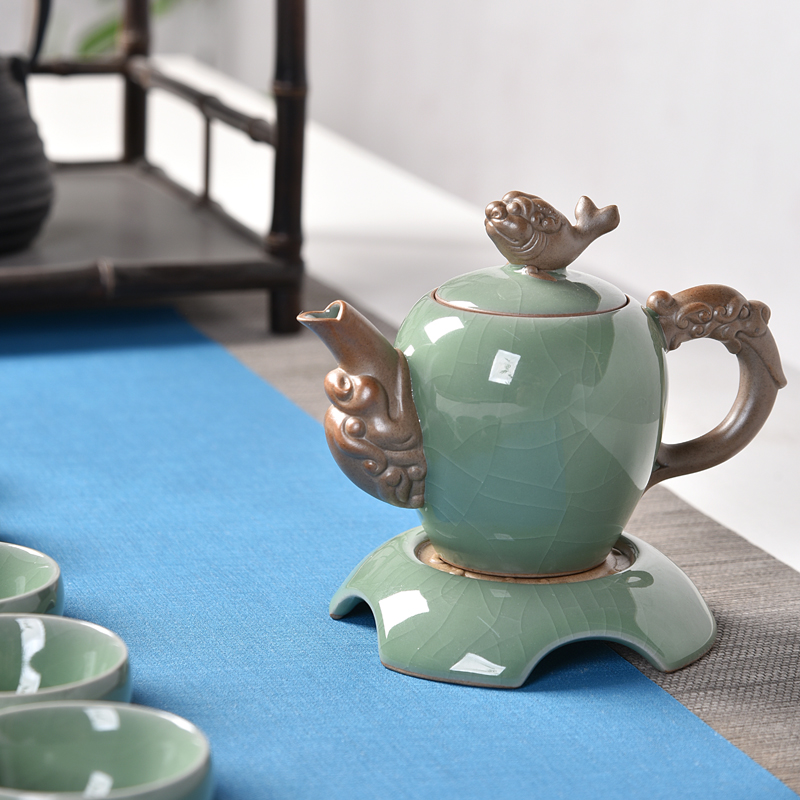 one thousand Changed Monkey Creative Green porcelain Gothic kiln ceramic tea set Kettle Bearing open sheet Ice Cracked Glaze Teapot Kongfu Tea With Whole Set-Taobao