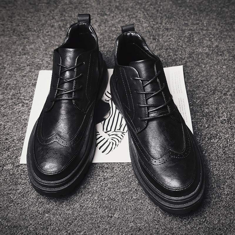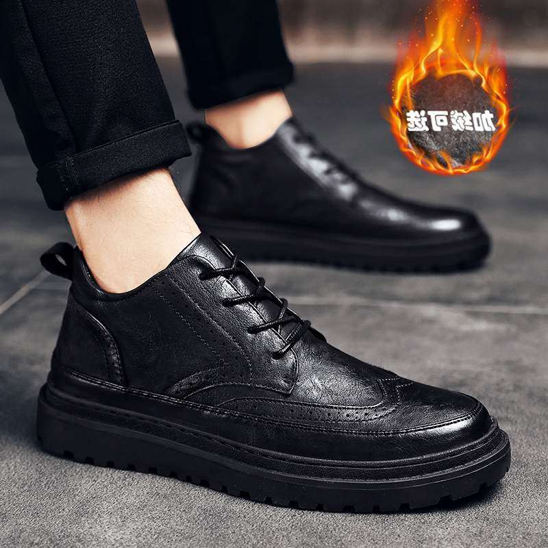 British casual high-top leather shoes 2022 Korean version of the trend of all-match medium-tube board shoes men's Martin boots spring men's shoes