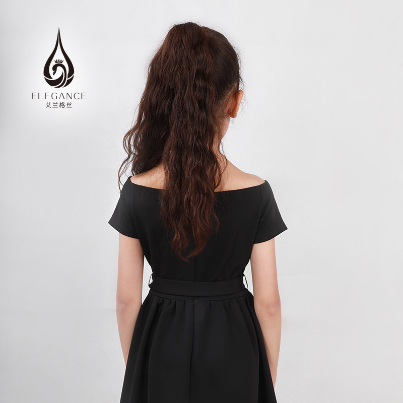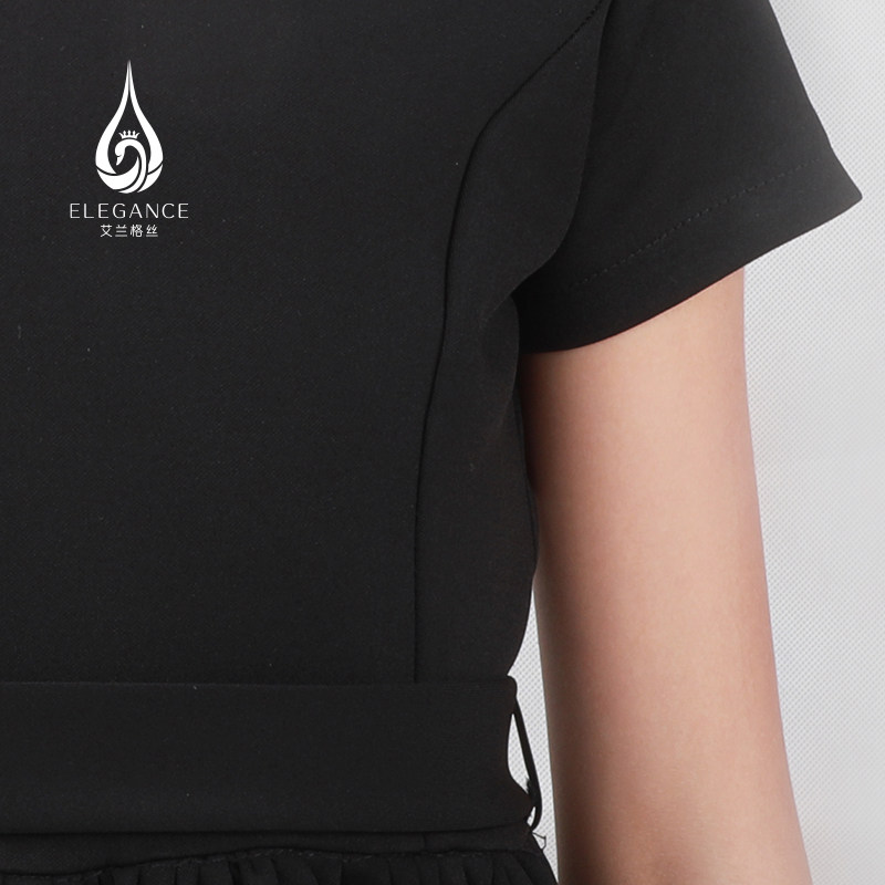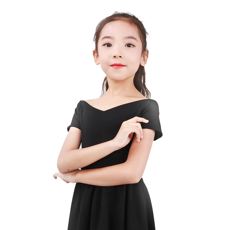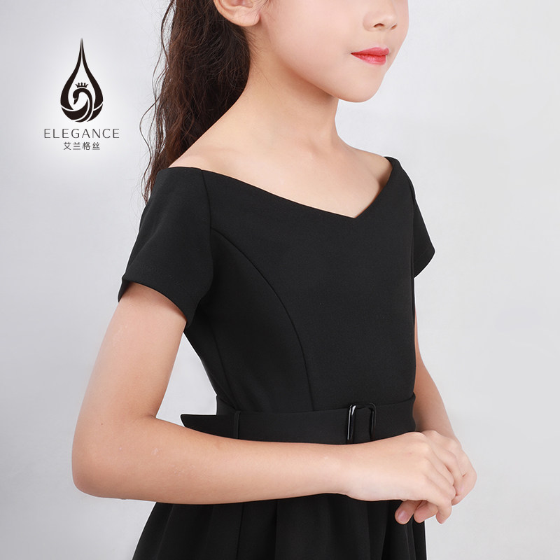 ELEGANCE Elange Black Princess Skirt Body Etiquette Performance Dress Girl Dew Shoulder Short Sleeve Walking Show