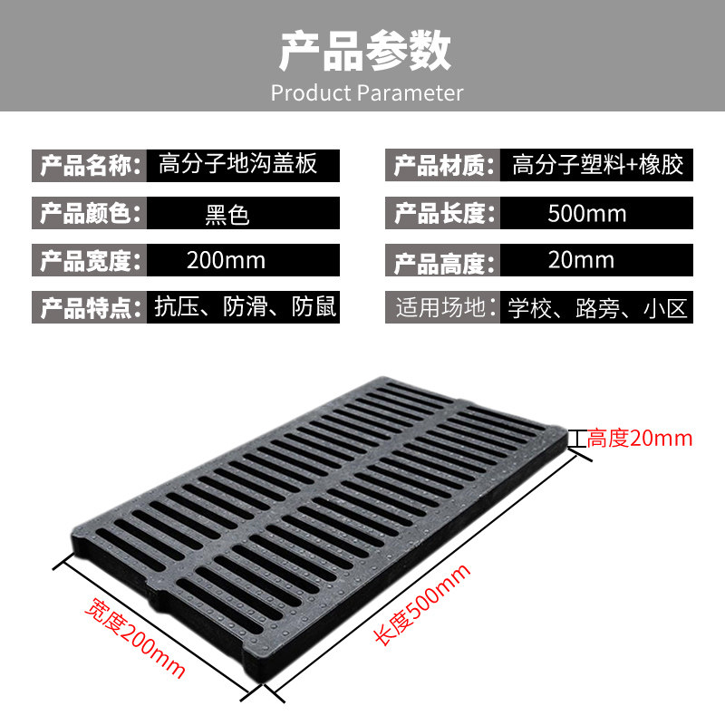 Polymer gutter cover drainage gutter floor drain rainwater grate kitchen sewer gutter plate plastic grid plate
