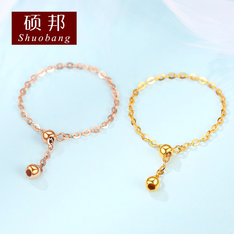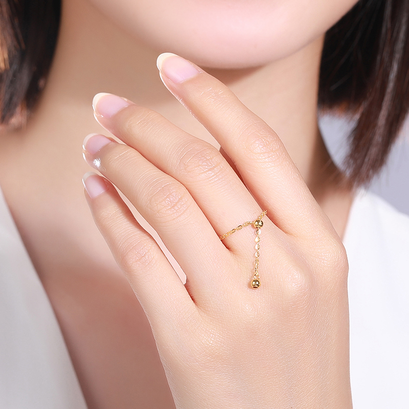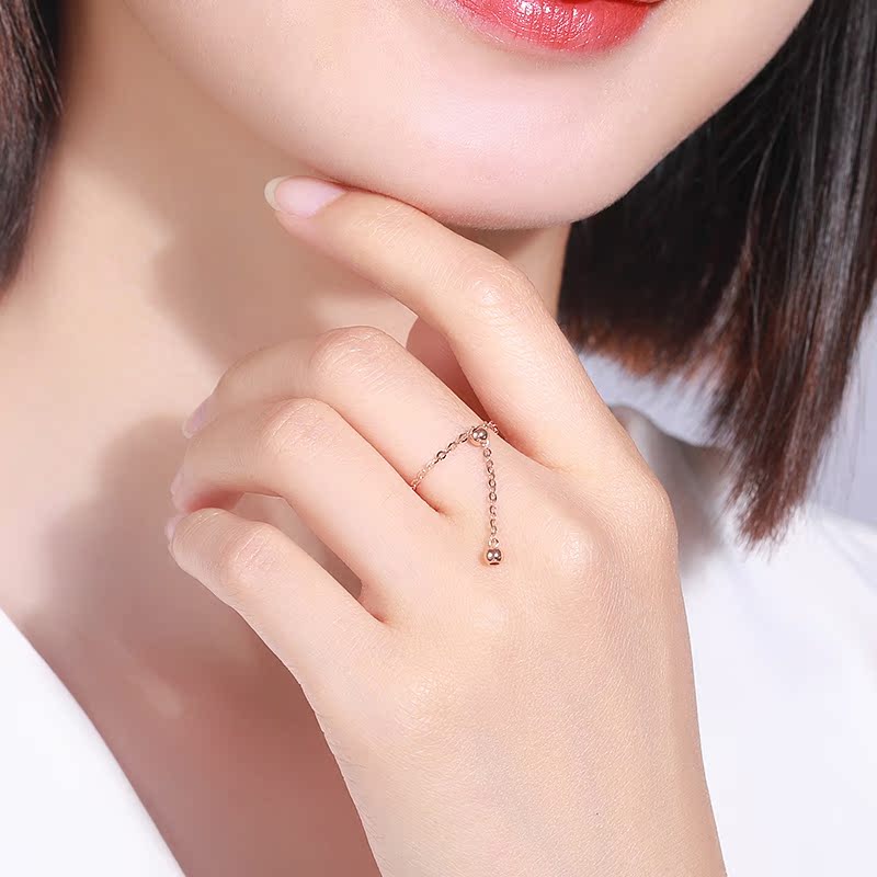 18K gold soft ring transfer pearl ring female rose gold color gold au750 fine ring net red adjustable chain tail ring