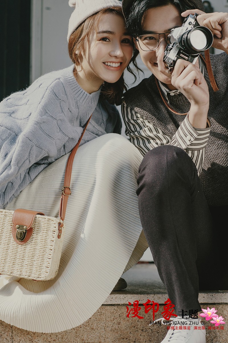 2023 New Studio Couple Write the Korean Sweater Take Photography Theme Street to take a bridge and clothing art photo