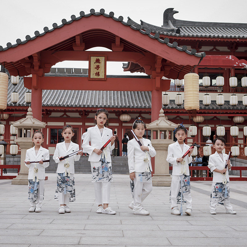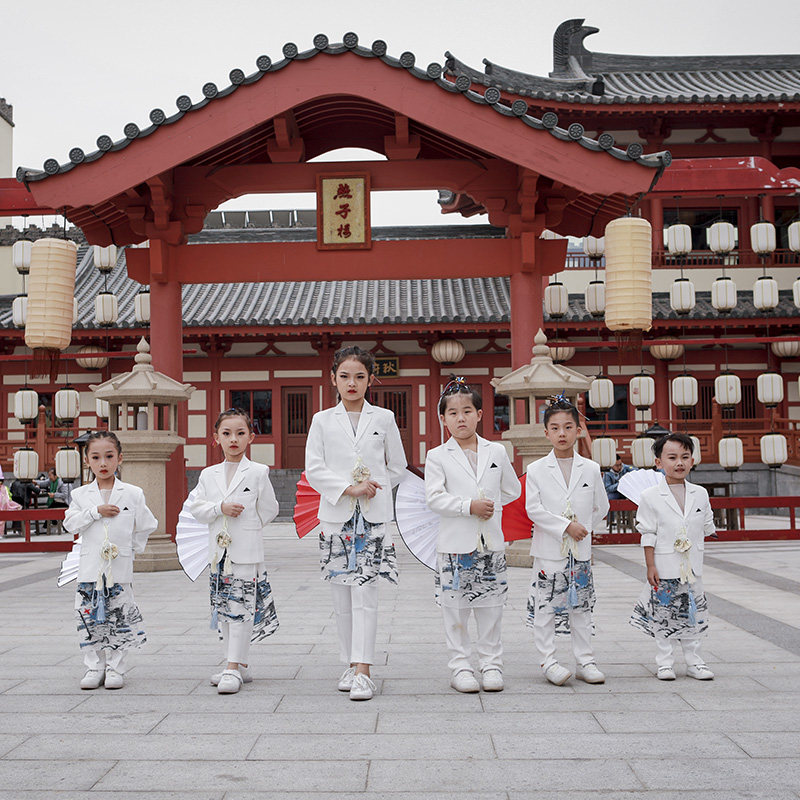 Rental white suit, white trousers, crane ink shirt, blue su belt, white fan, crane sachet, white suit, white trousers, crane ink shirt, blue su belt, white fan, crane sachet