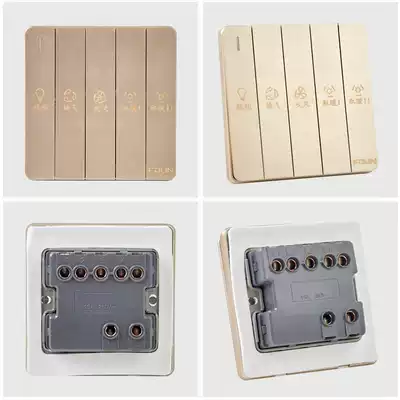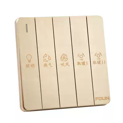 Yuba switch five open 86 type universal champagne gold waterproof panel makeup room heater heating five in one