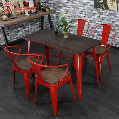 Coffee shop waterproof sunscreen Courtyard solid wood outdoor balcony leisure wrought iron table and chair three-piece snack bar Dessert shop