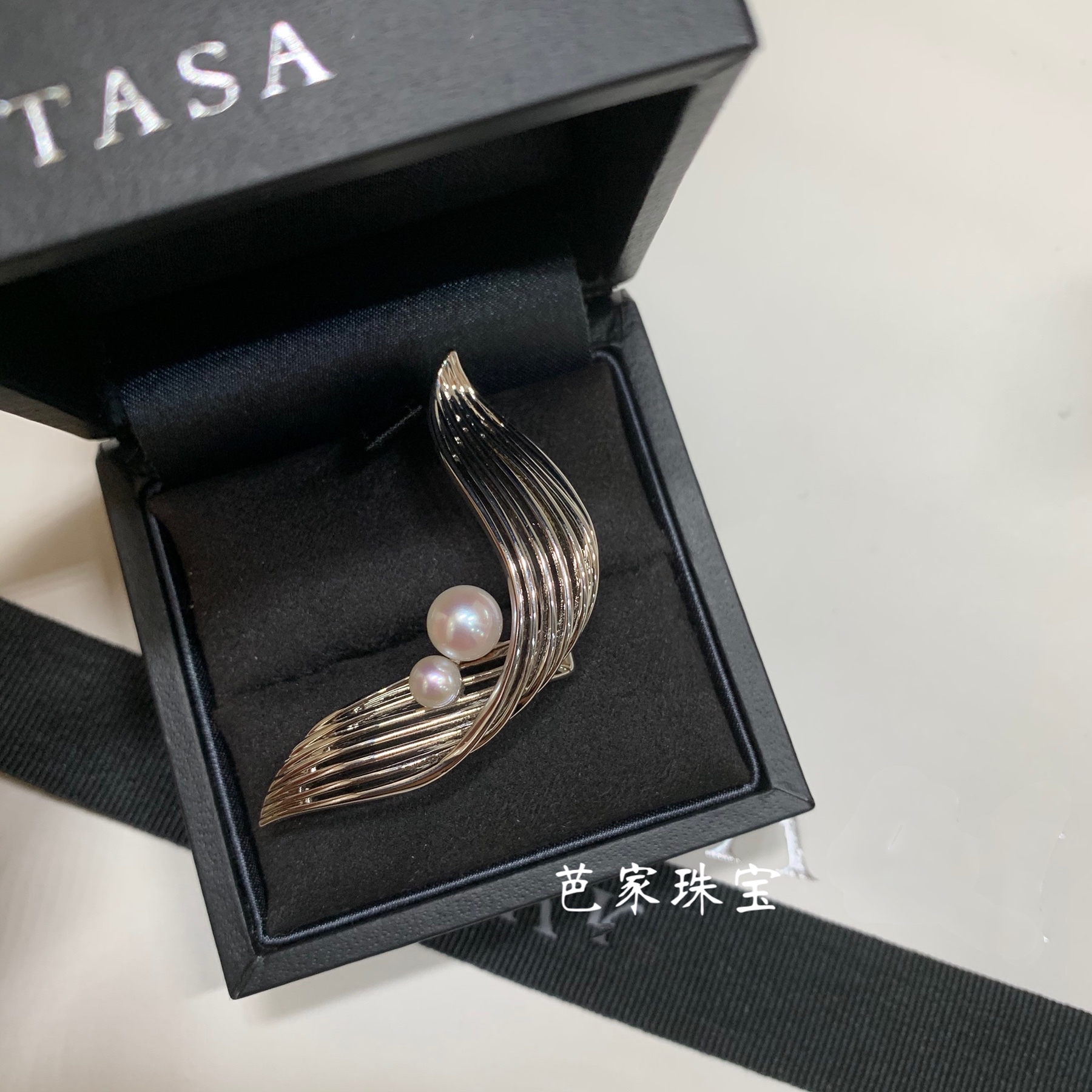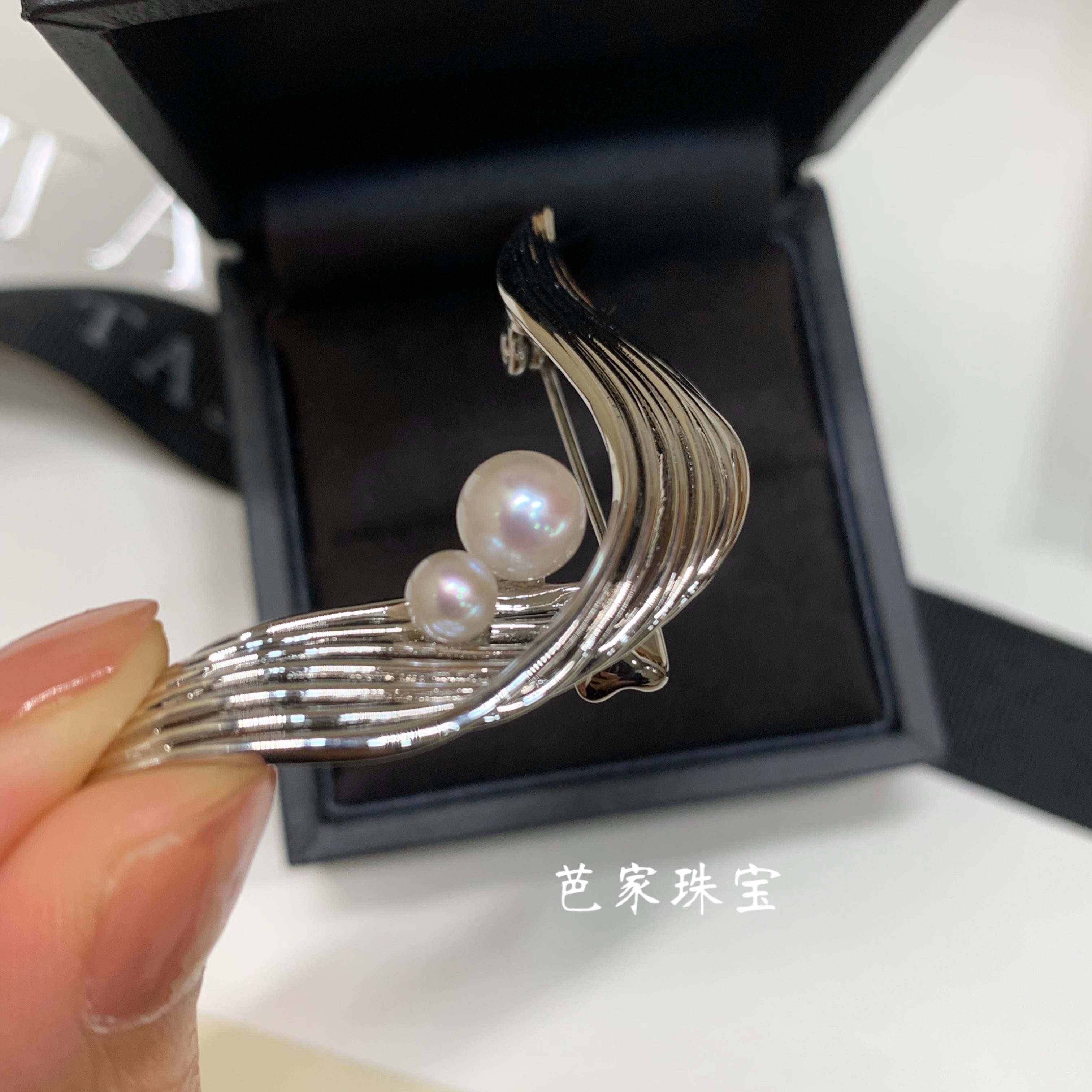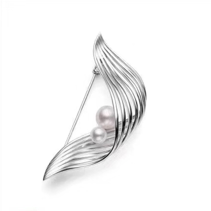 T section three-dimensional line natural Japanese akoya sea pearl brooch