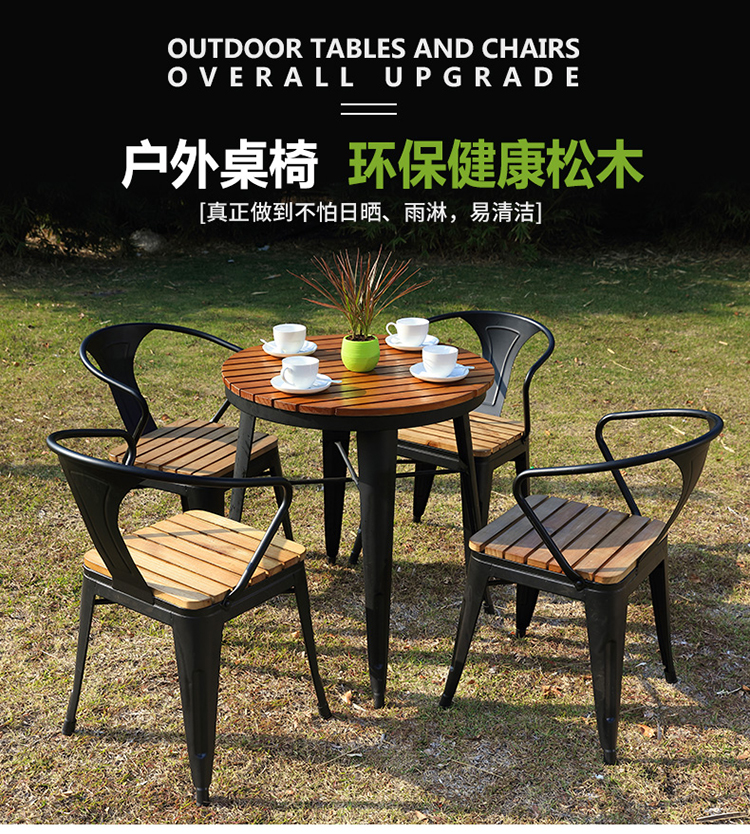 Outdoor café outdoor open air sunscreen waterproof anti-corrosive solid wood plastic wood Balcony Patio Furniture 5 pieces of furniture