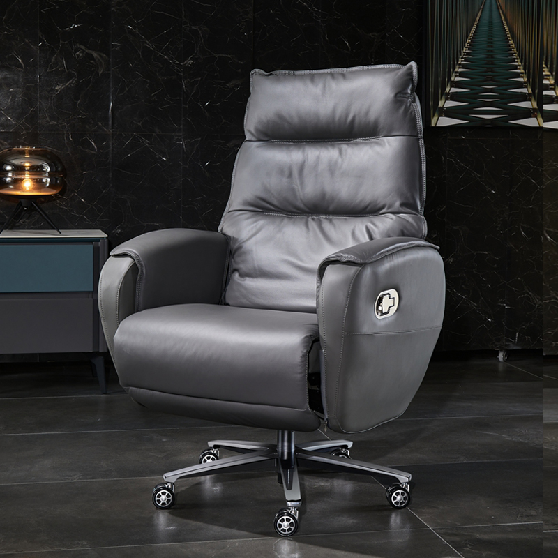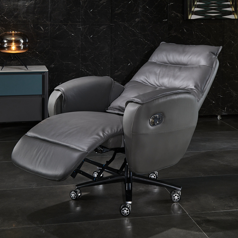 Thickened West Leather Grey Matching Class Front Chair - Cowhide Manual Reclining - Spot Quick Hair Thickened West Leather Black Top Layer Leather Grey Top Layer Leather Black Human Body Contact Cowhide Seated Down Filling