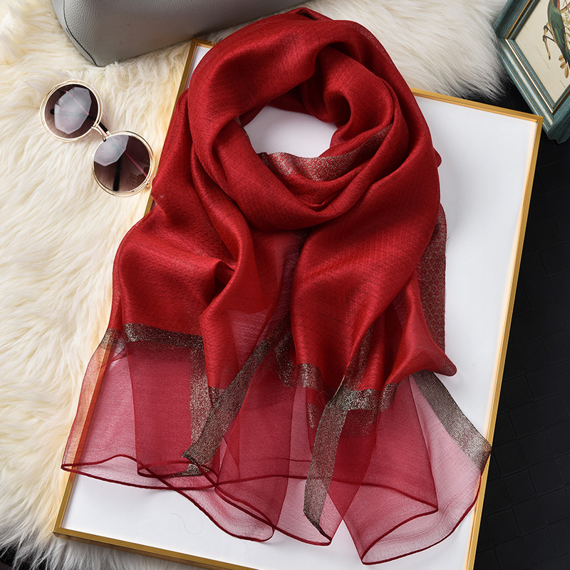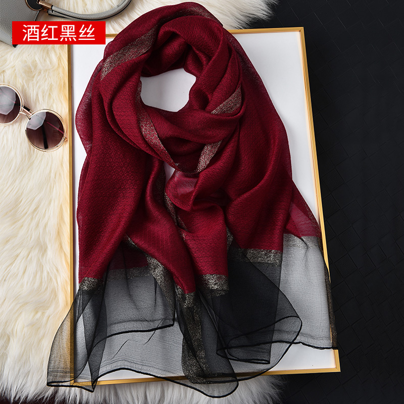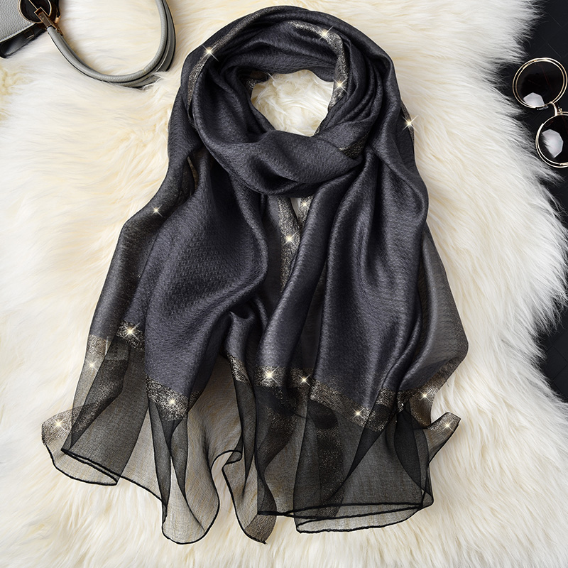 Black gold rim silk scarf autumn and winter Western style fashion all-match spring and autumn thin scarf long version silk chiffon spring and autumn yarn scarf