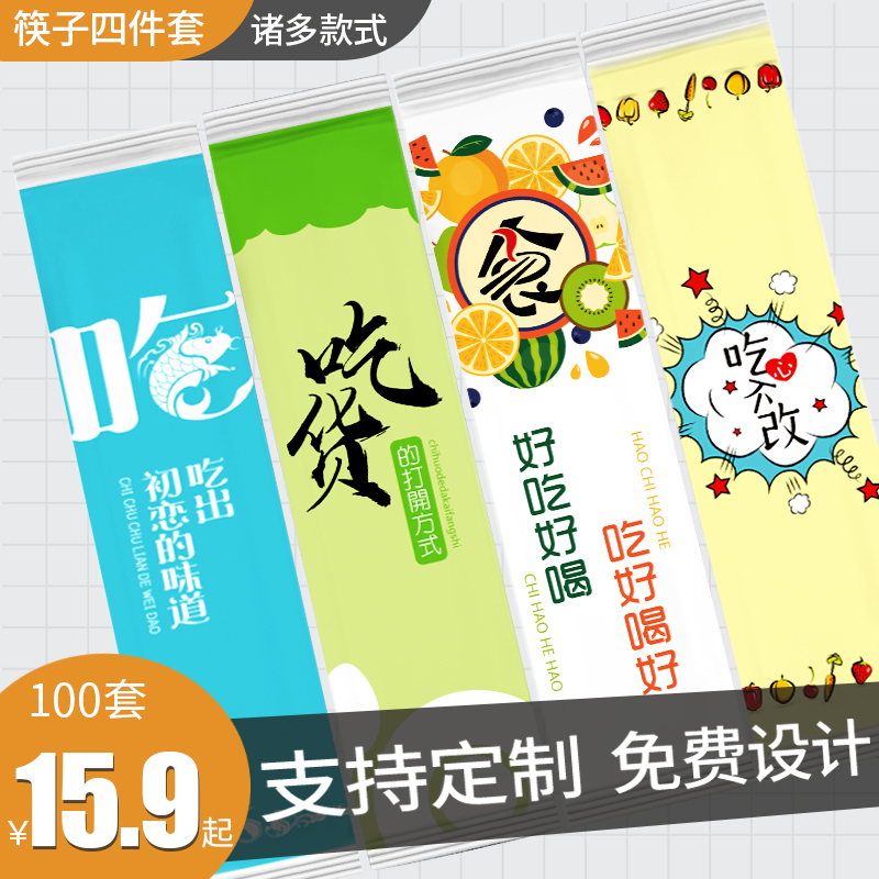 Disposable chopsticks four-piece set Spoon toothpick paper towel delivery packing tableware four-in-one three-piece set can be customized for commercial use