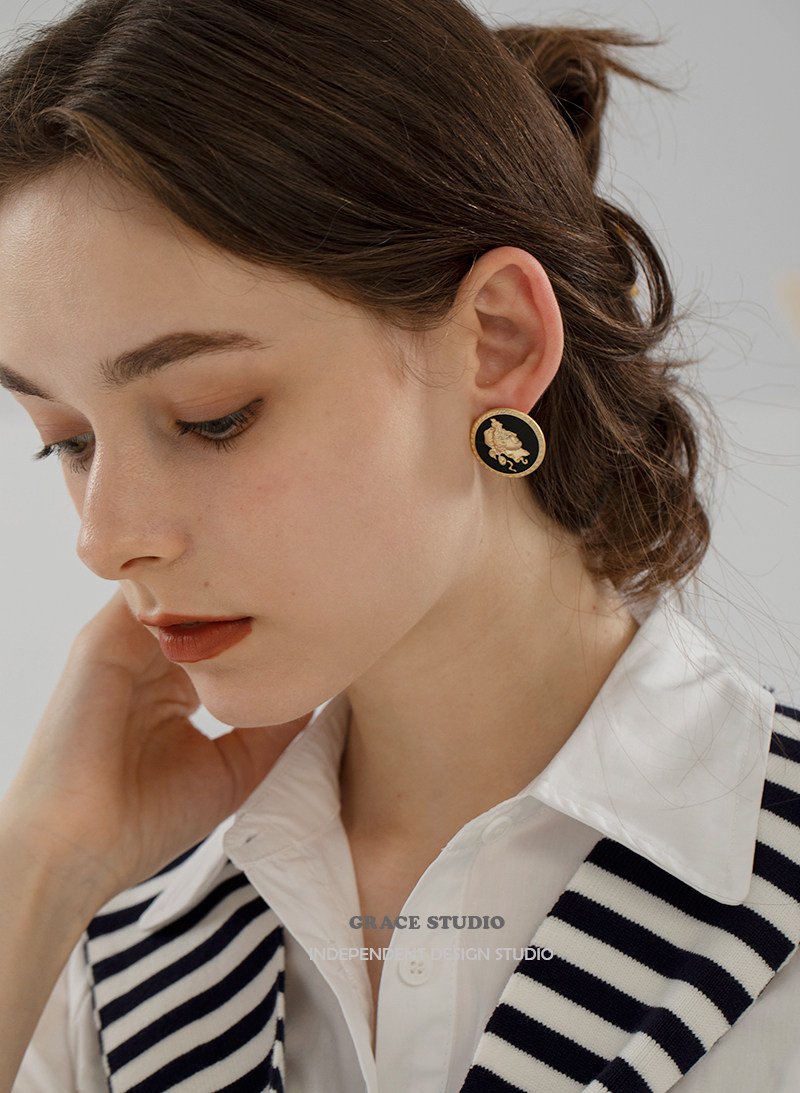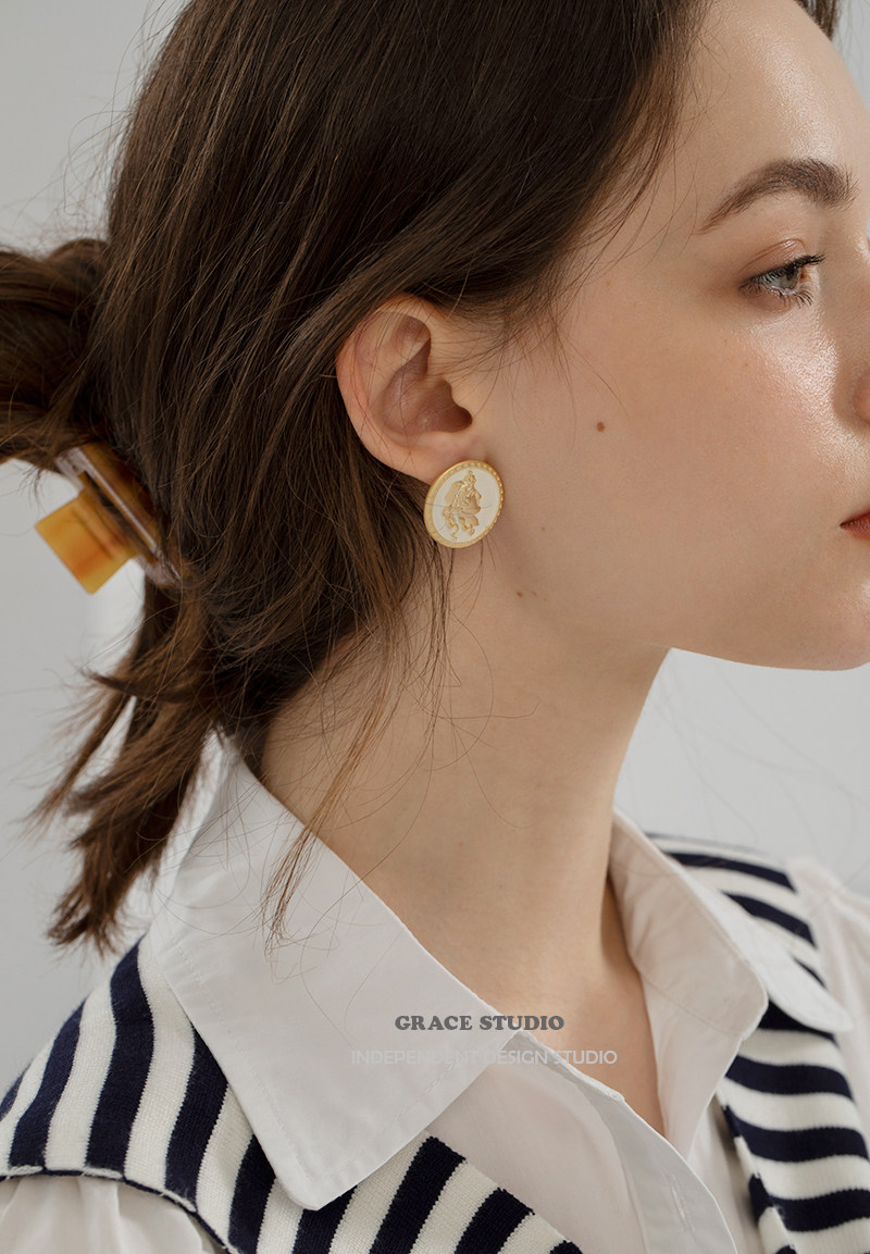 G S Asura Retro Embossed Portrait Earrings Female 2019 New Coin Metal Earrings Trendy Geometric Earrings