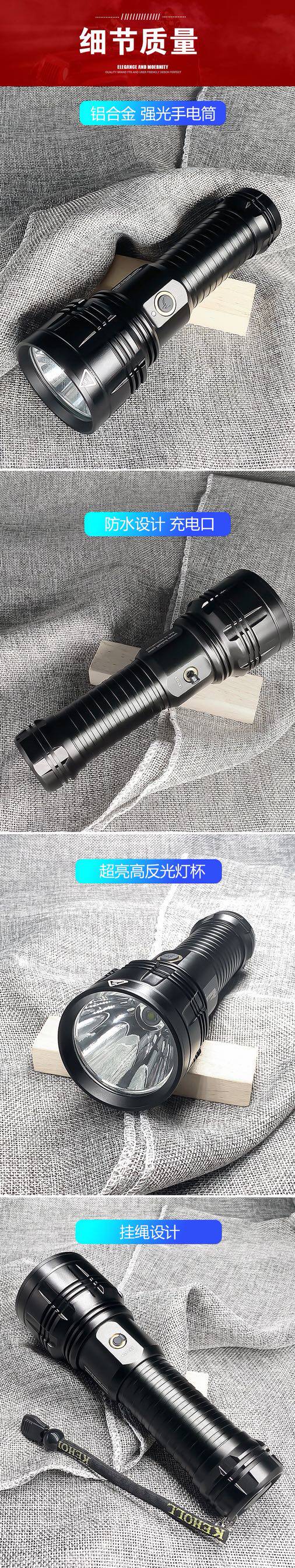 Italian Cannon Glare flashlight Charging LED searchlight ultra-light Far-shot xenon lamp outdoor flashlight Lithium battery