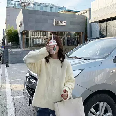 One Sanliang Pin small man winter with high Korean version of loose mohair sweater women's white pullover sweater