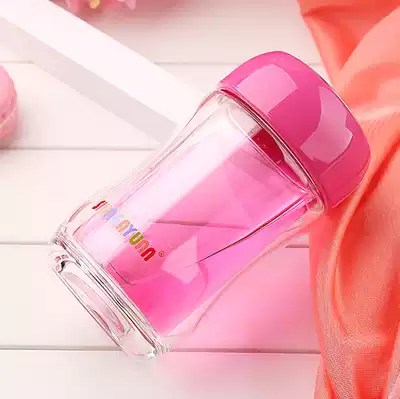 Simple mini glass cup cute portable tea cup small water bottle leak-proof thick pink female water cup small