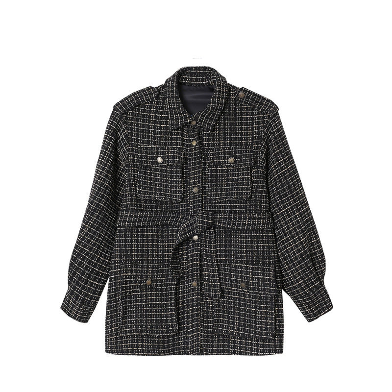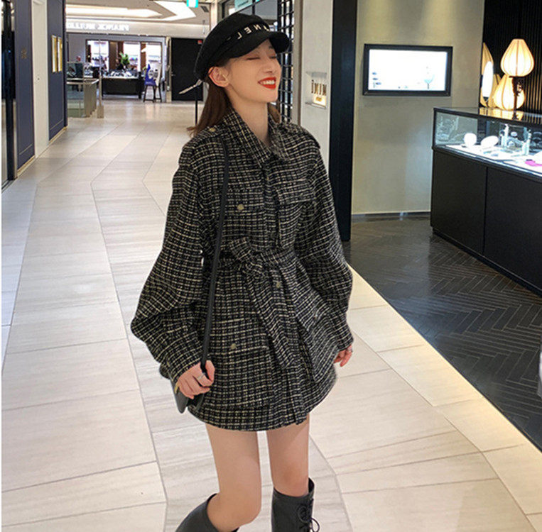 Wool, great coat of women's medium long version 2021 autumn winter new South Korean pop retro black plaid small fragrant wind jacket
