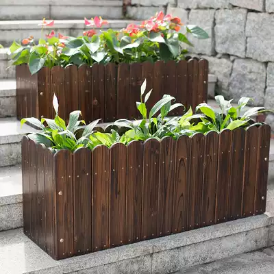 Outdoor flower box anticorrosive wood Flowerpot Garden planting box extra large rectangular carbonized solid wood balcony planting pot