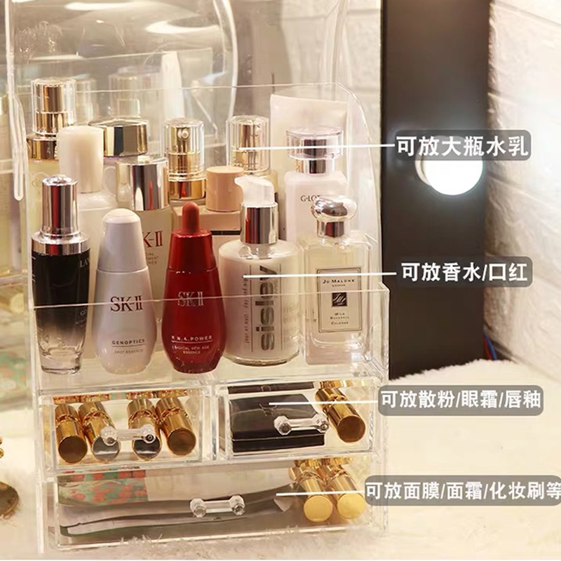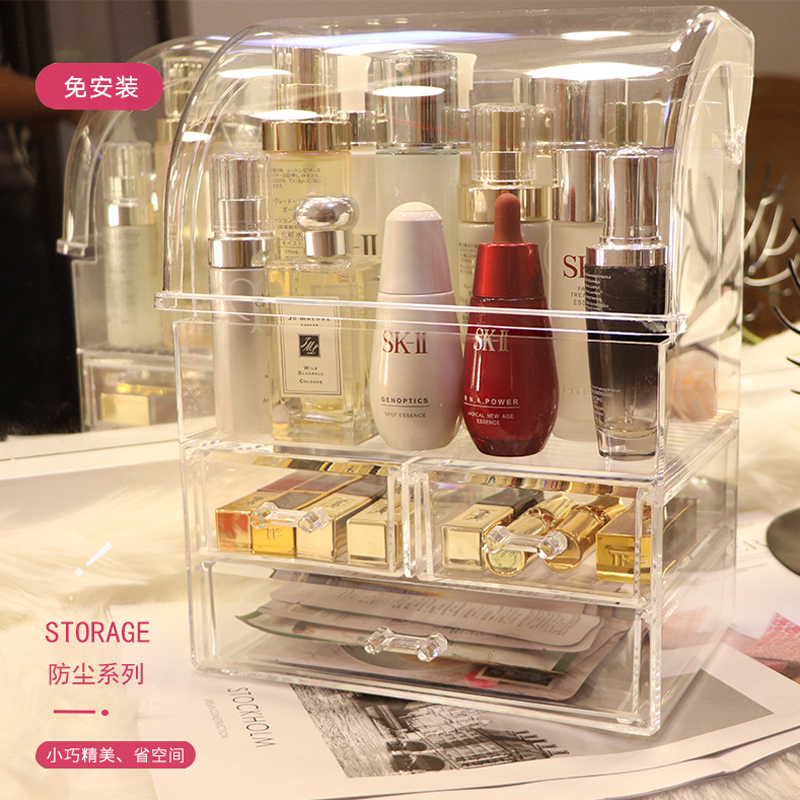 Dust-proof cosmetic storage box transparent table top shelf lip red skin care products acrylic make-up table finishing quarters