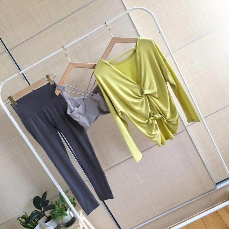 Large size slimming exercise shape beautiful second figure lemon yellow sports three-piece suit yoga dance dance gymnastics fitness clothes female
