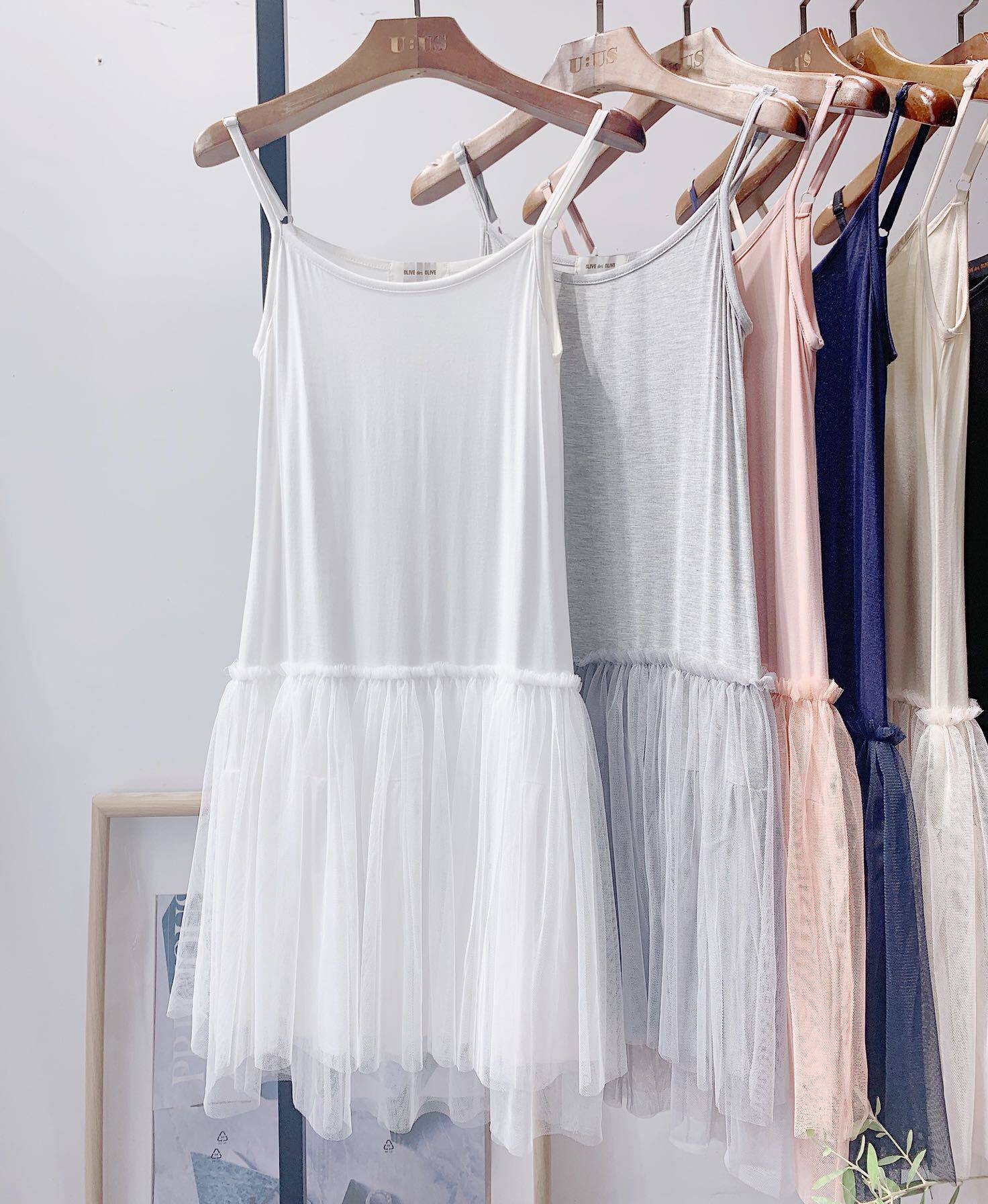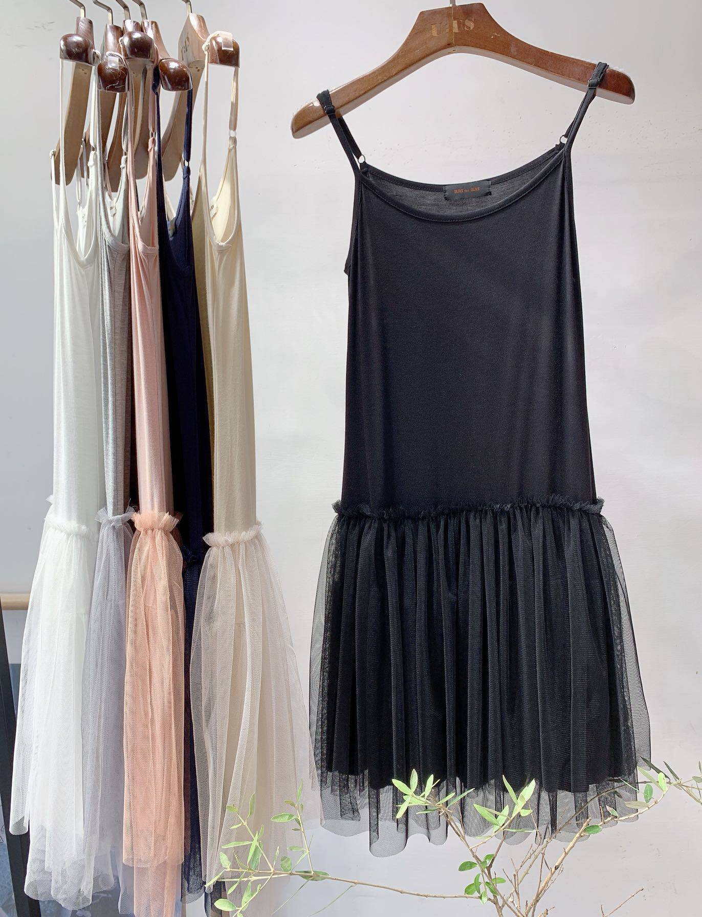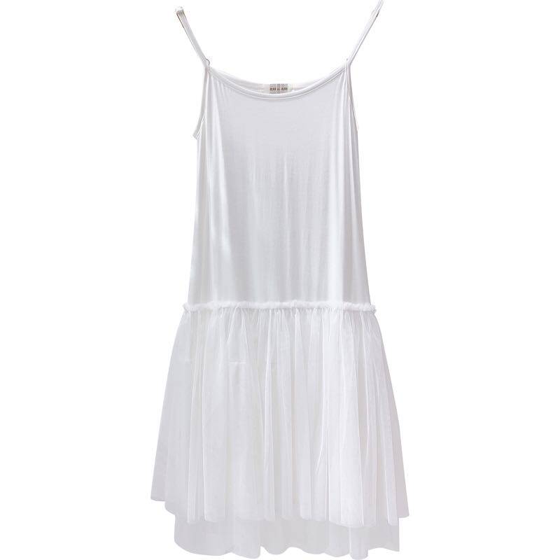 Spring Autumn Pure Cotton Beating Bottom Sashimi Strap Pendant Strap Dresses Lace Mesh Yarn Stitching Pupponné Hitchhiking Short Skirt Woman