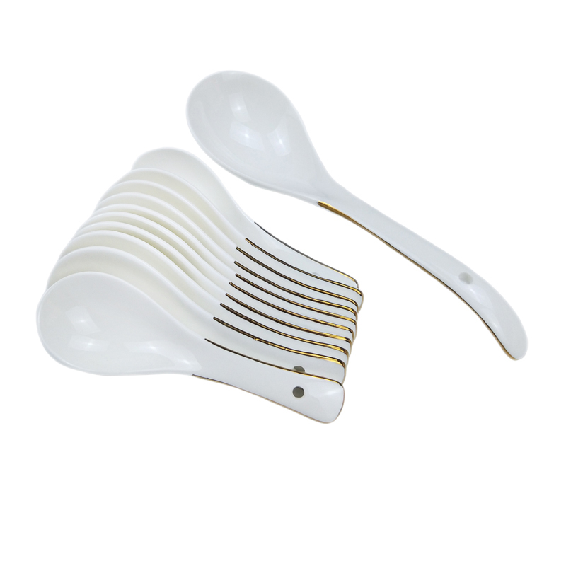 Ceramic spoon long handle household soup small spoon to drink soup to eat scoop spoon to drink porridge light luxury spoon porcelain spoon commercial