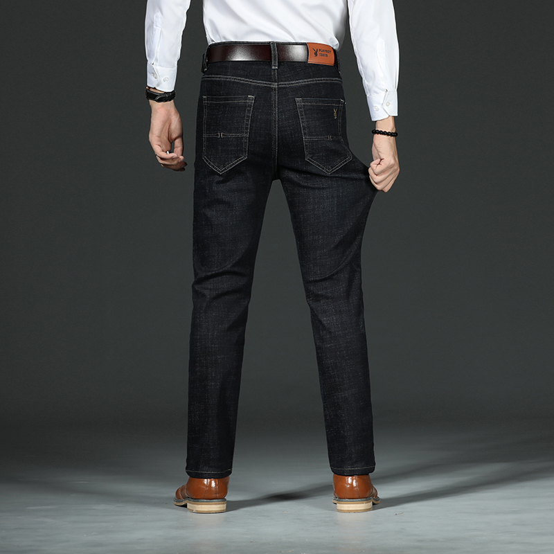 Flower Playboy jeans Men's loose straight cylinder Pants Elastic Casual Autumn Winter Thick-style Men Pants