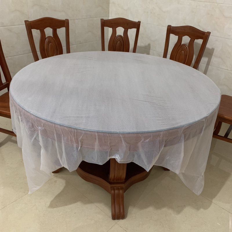 Disposable tablecloth Round table square thickened plastic tablecloth Imitation silk large plastic film table cloth Wedding banquet