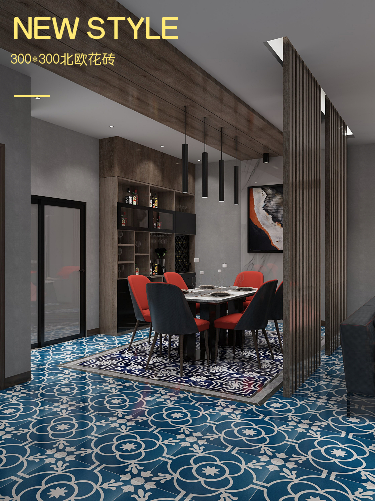 Blue American Retro Nordic Small Flower Brick Bathroom Makeup Room Non-slip Floor Tiles Dining Room Tile Wall Brick Kitchen Toilet