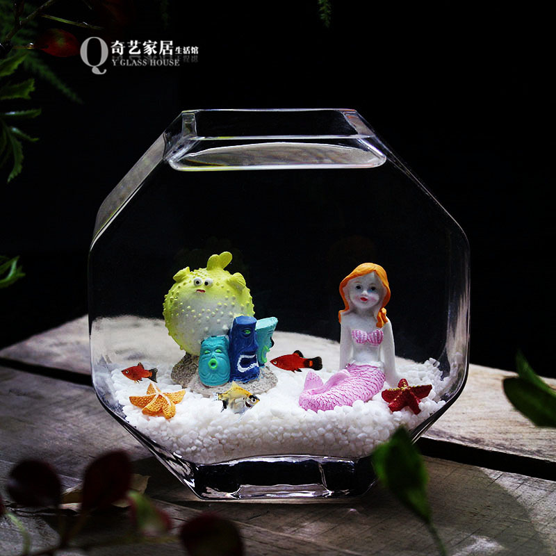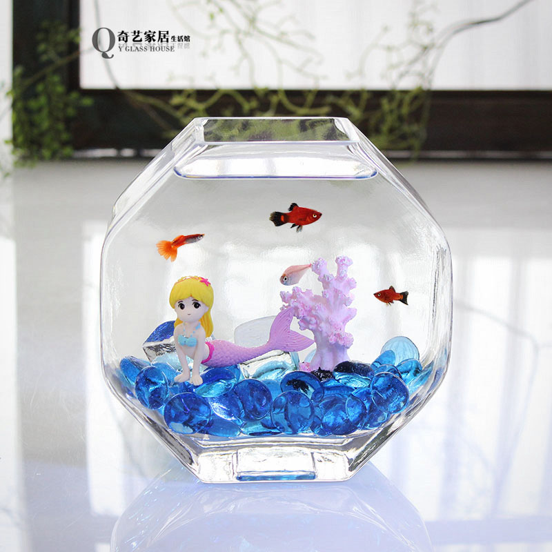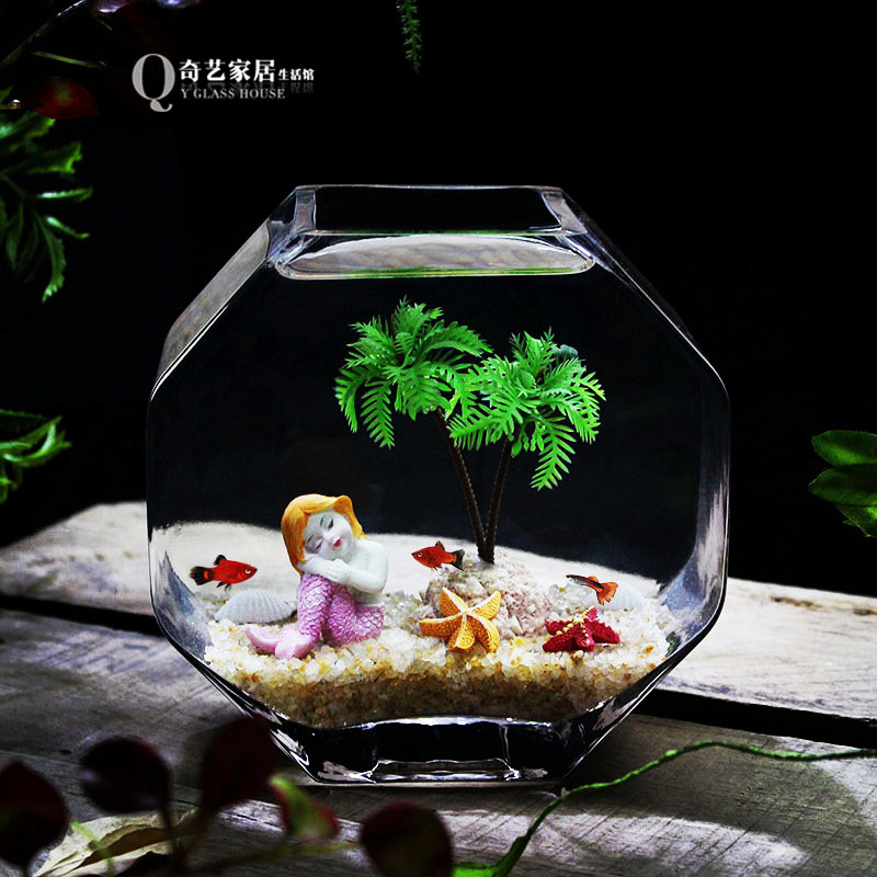 Betta fish tank thickened high white glass personality fish tank small creative fish tank desk desktop tropical fish tank hexagon