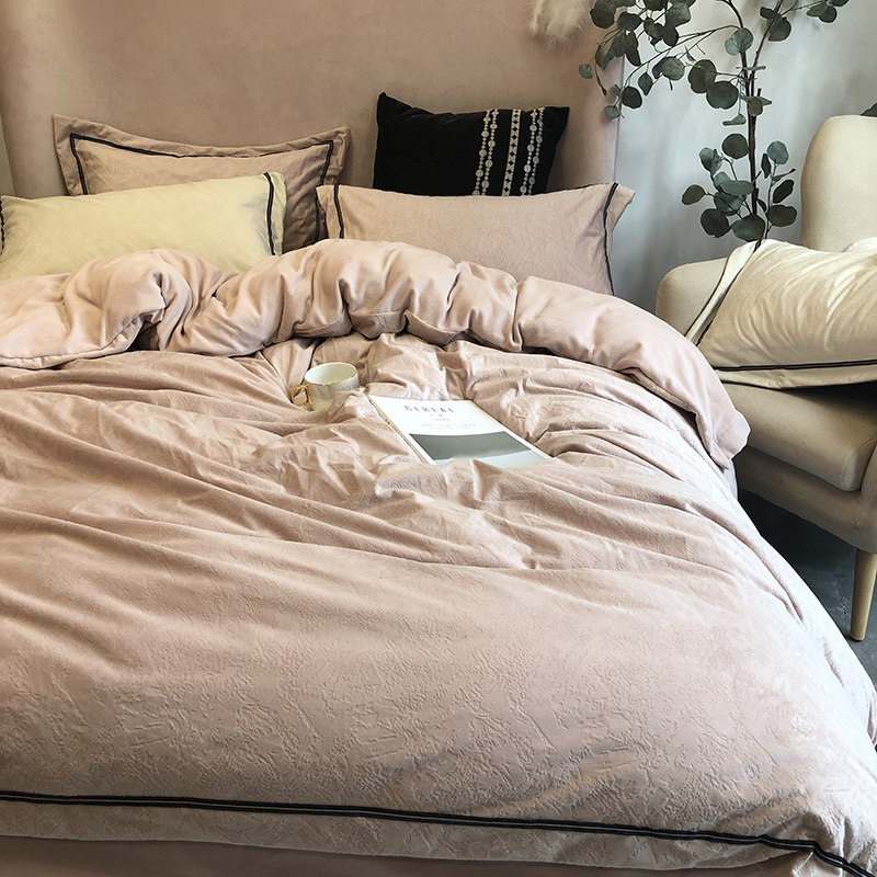 High-end Italian embossed suede four sets of baby suede short fur flange suede pure color winter coral suede bedding