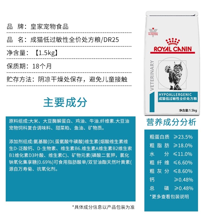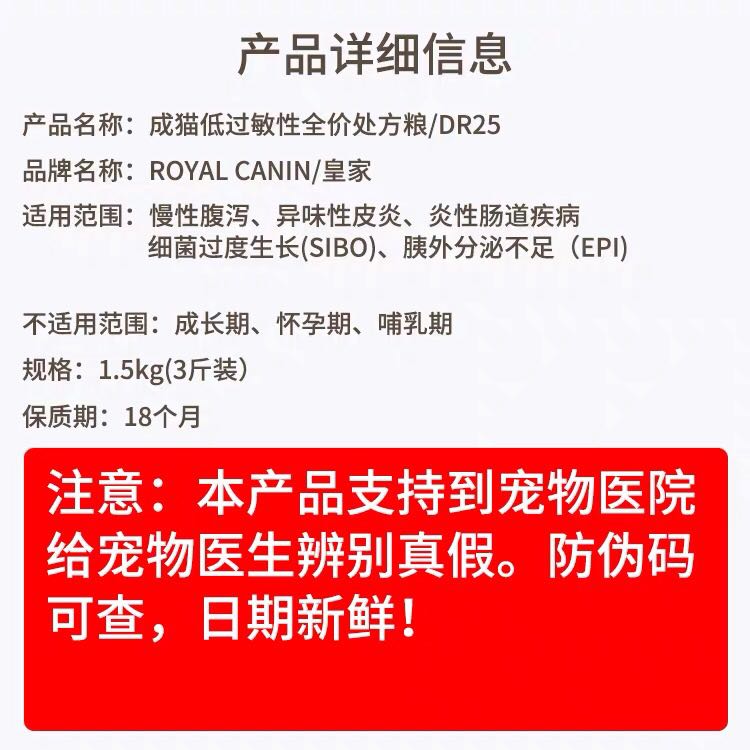 Royal Cat Food Cat Diarrhea Skin Allergy Intestinal DR25 DR25 1 5KG Cat Low Allergic Full Price Prescription Grain