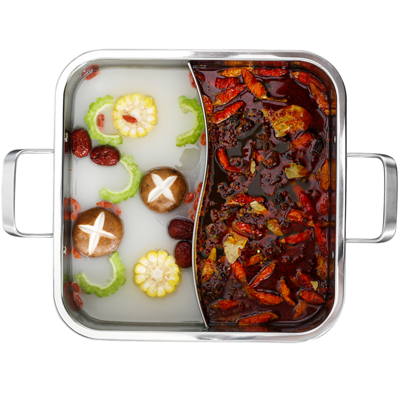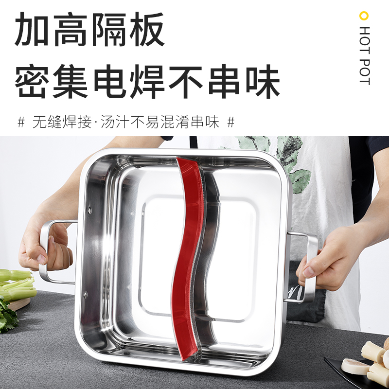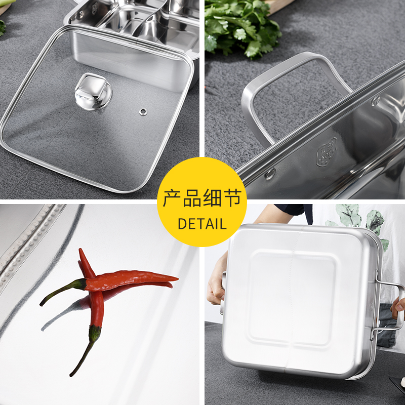 Thickened 304 MANDARIN PAN HOT POT PAN ZIPAN BOILER SPECIAL STAINLESS STEEL STRINGS SERIES 4-6 PEOPLE SQUARE HOME BOILING HOT POT PAN