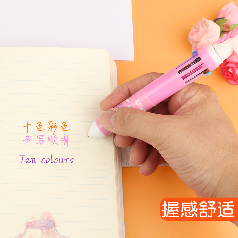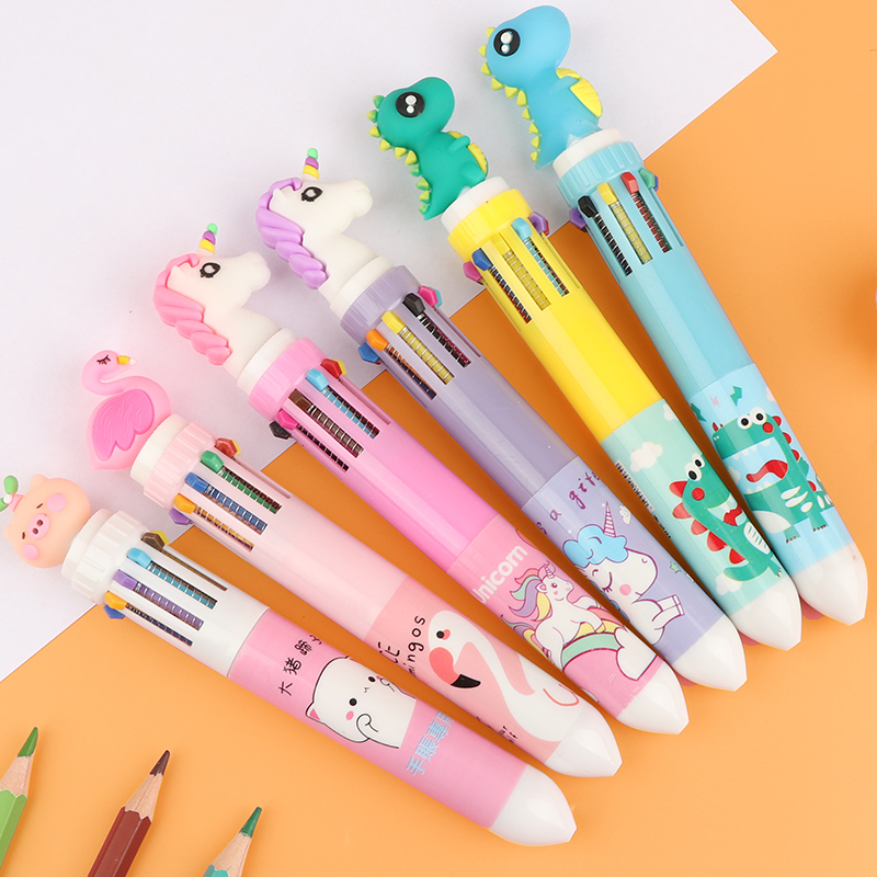 Cute 10-color ballpoint pen Multi-color ten-color mark number notebook pen Neutral water-based pen Girl pen multi-color push-down oil pen Cartoon children's students special stationery prizes
