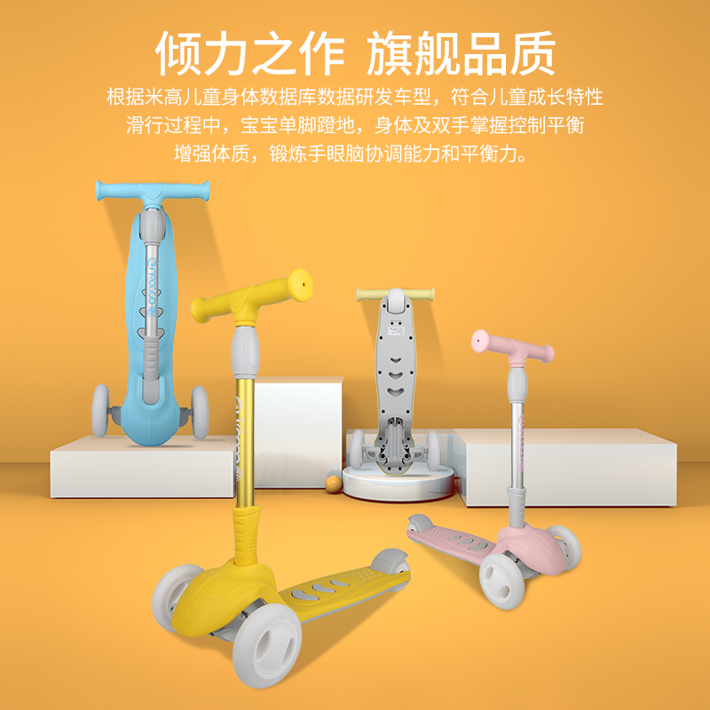 Migao scooter children's folding 1-3-12 years old sliding car flashing three-wheeled one-foot sliding car balance car pedal