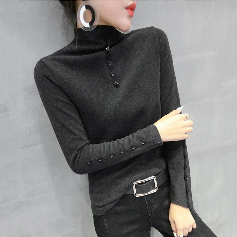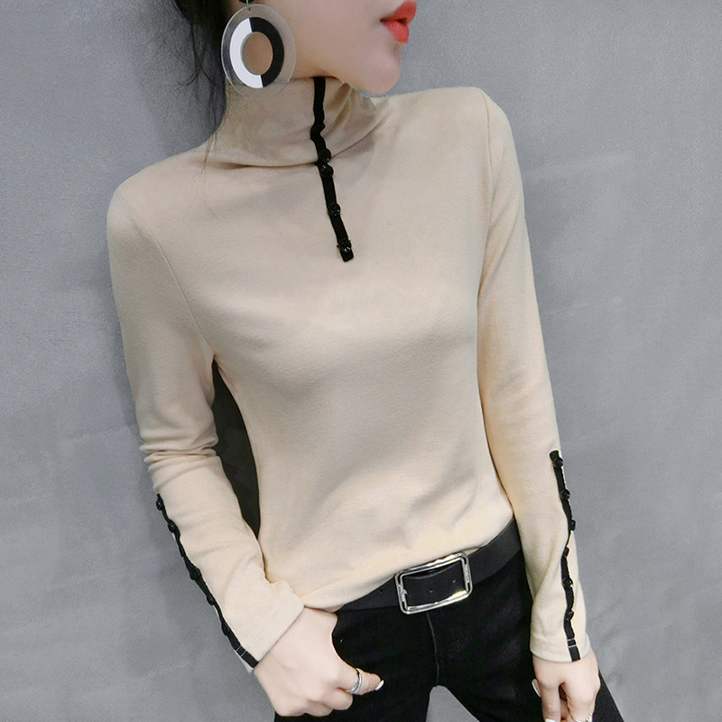 Half-high collar bottoming shirt women's autumn and winter 2022 new thickened brushed T-shirt women's long-sleeved slim-fit western style inner top - Taobao