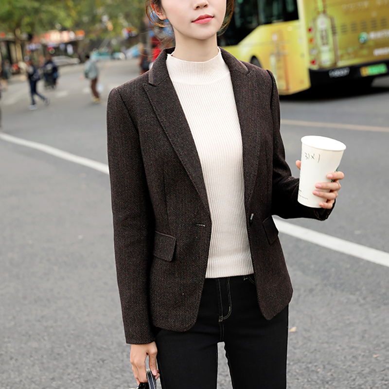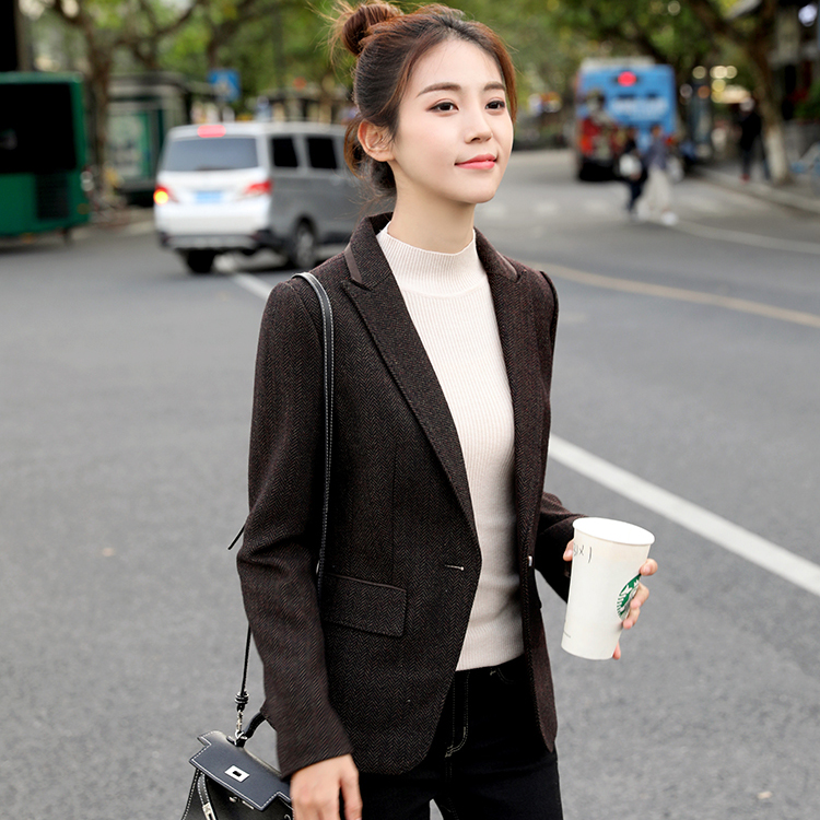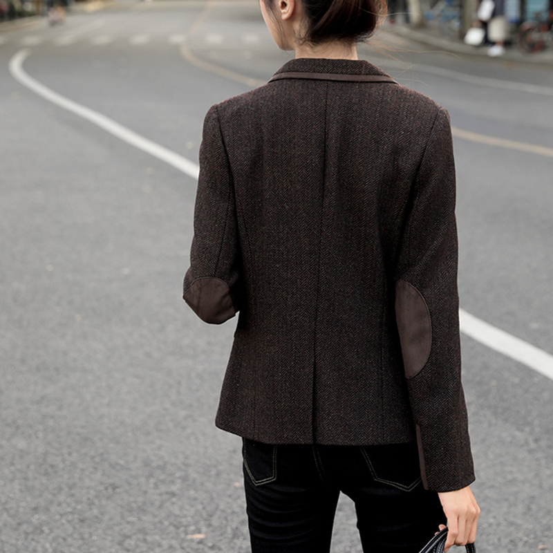 The human - written wool suit coat girl 2022 new autumn and winter long sleeve splice slip coat
