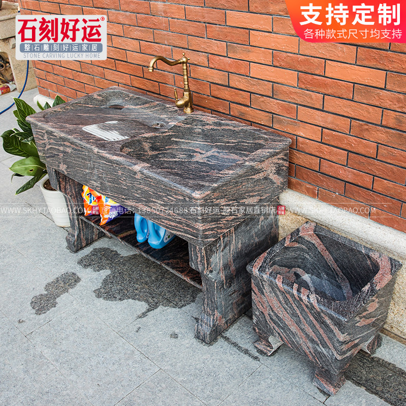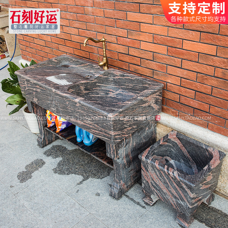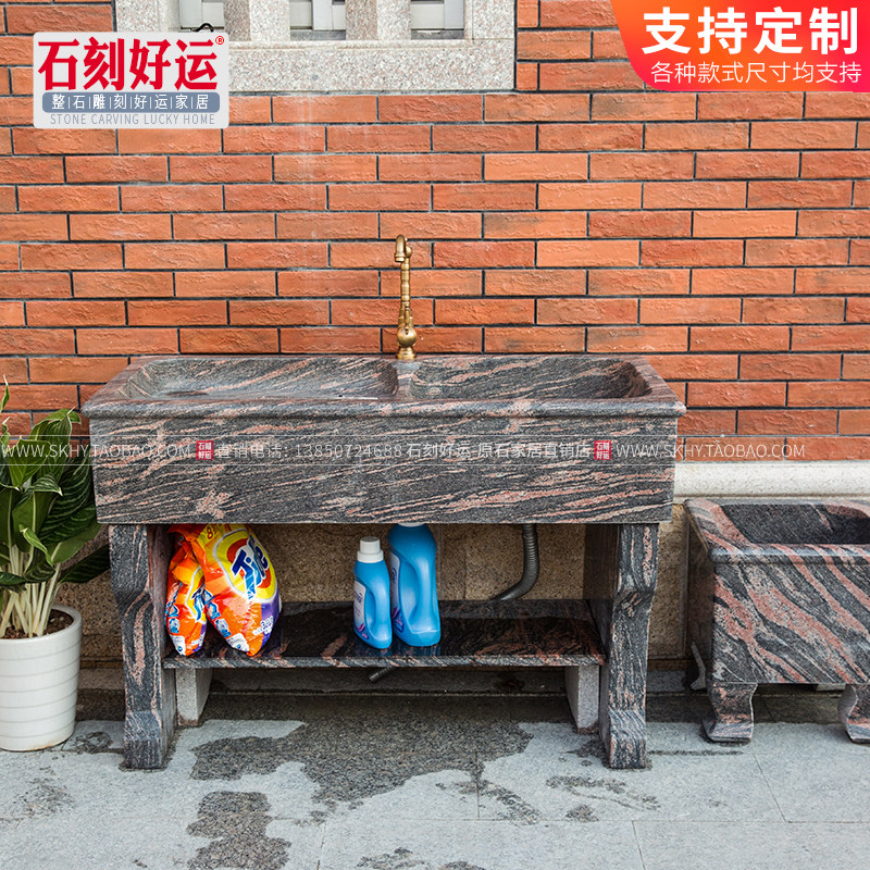 Magic Color Red Whole Stone Laundry Pool With Washboard Balcony Marble Granite Laundry Tank Home Outdoor Single Double Trough Washbasin